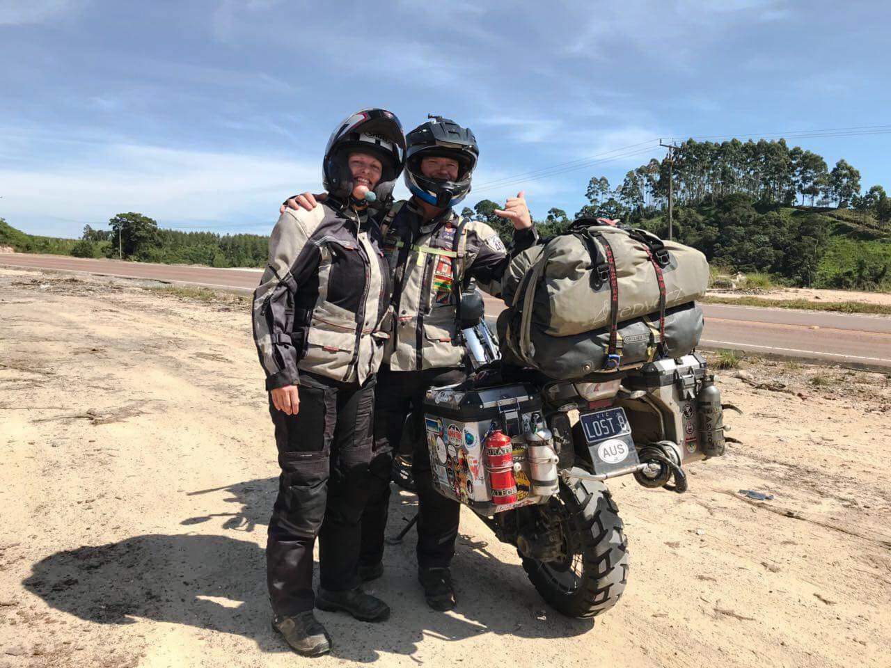 So much to say; overall the tent has been great, we have put it up and down 300 days out of the year. After so many times we can set it up in around 5 minutes, while packing up takes a bit longer. The “Zip Sliders” (metal parts) on the inner door zips wore and I have replaced them with new sliders and now no issues. After 3 days of big winds down the Patagonia one of the “Peg Ties” ripped off the tent; but this was easily repaired; other than these things, we havent had any other problems. We dont store the bike in the “Garage” part as they are designed to, as it becomes to cumbersome, but this area is great to sit in, especially when the weather is bad. For future travels we will source a smaller tent with a similar add on vestibule to store equipment. The tent, with our clothes bag also forms part of the “backrest” form Em while on the bike; grey bag on top.